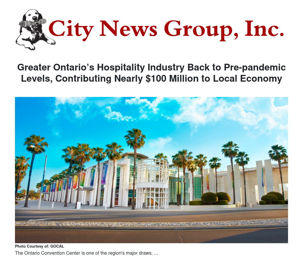 Hospitality and tourism reaffirmed its critical role as an economic driver across Greater Ontario this past year, contributing $96.57 million to the local economy and outperforming the industry as a whole, according to an annual report released Thursday by Greater Ontario California (GOCAL).