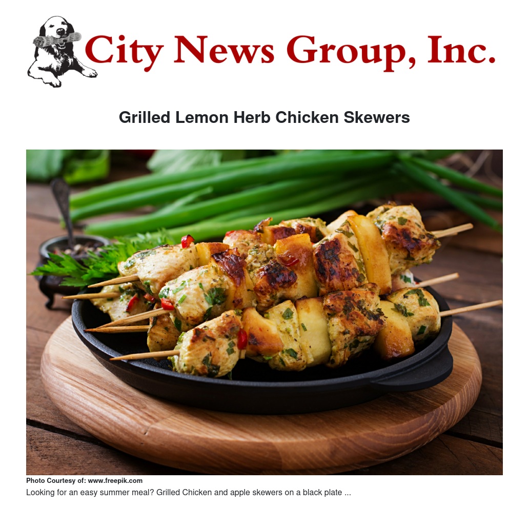 Grilled Lemon Herb Chicken Skewers by Ruby Stephenson - City News Group, Inc.
