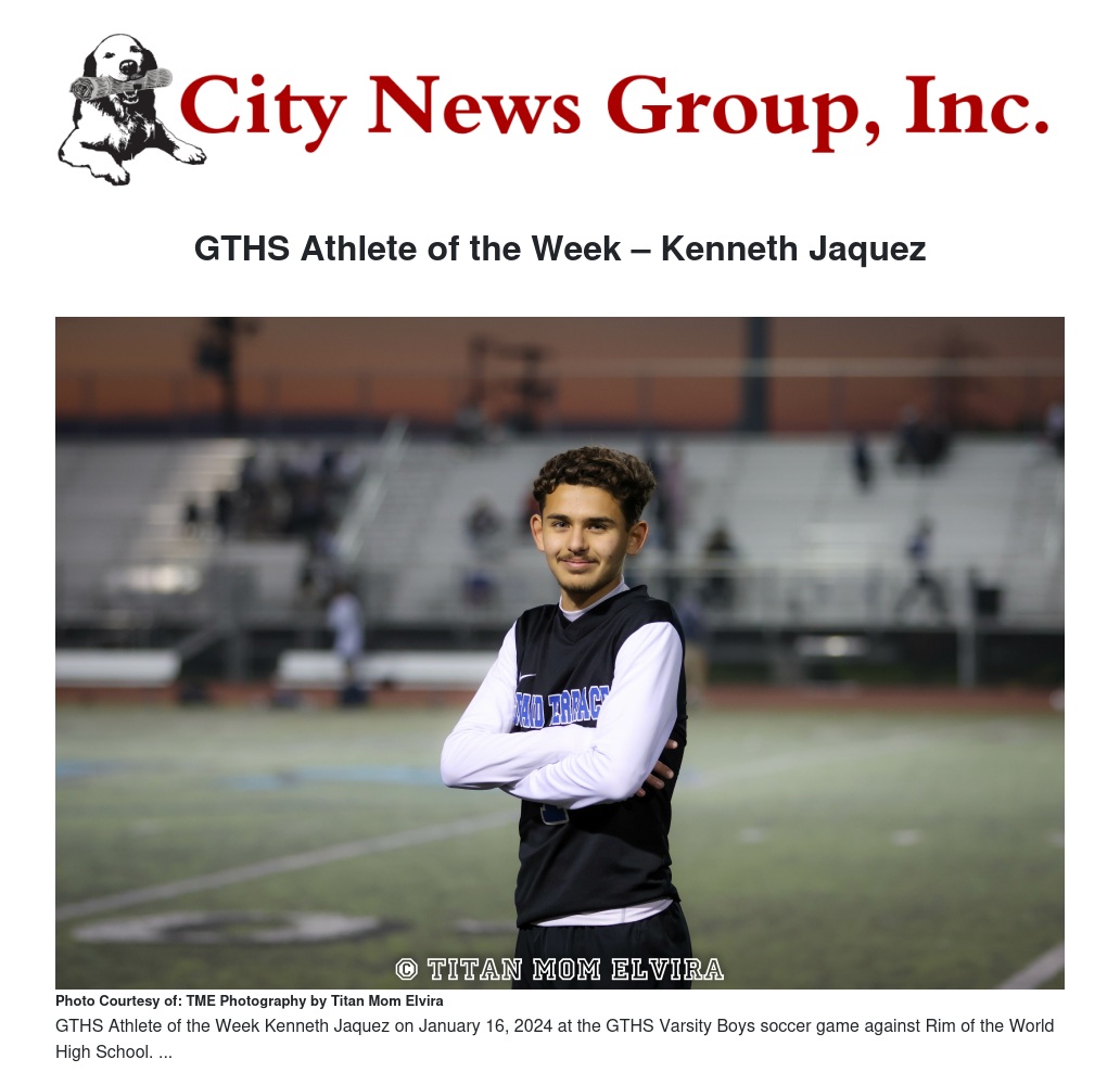 GTHS Athlete of the Week – Kenneth Jaquez by Titan Mom Elvira - City News Group, Inc.