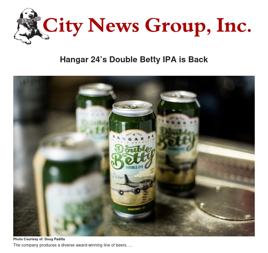 Why the move from 22-ounce bottles to cans for Double Betty? The benefits are too numerous to list in their entirety, but cans are better at protecting beer from light, are lighter to transport therefore reducing their environmental impact, won’t shatter, and the elimination of breakage makes it fit in better with an adventurous lifestyle of hiking, camping, river rafting and going to the beach. More canned Hangar 24 Craft Brewing beer is ahead in 2018. Double Betty IPA joins Orange Wheat, Betty IPA and 24 Blonde Ale in the canned format, but will be the only one of the four packaged exclusively in cans. Double Betty IPA is also available in draft format from kegs.