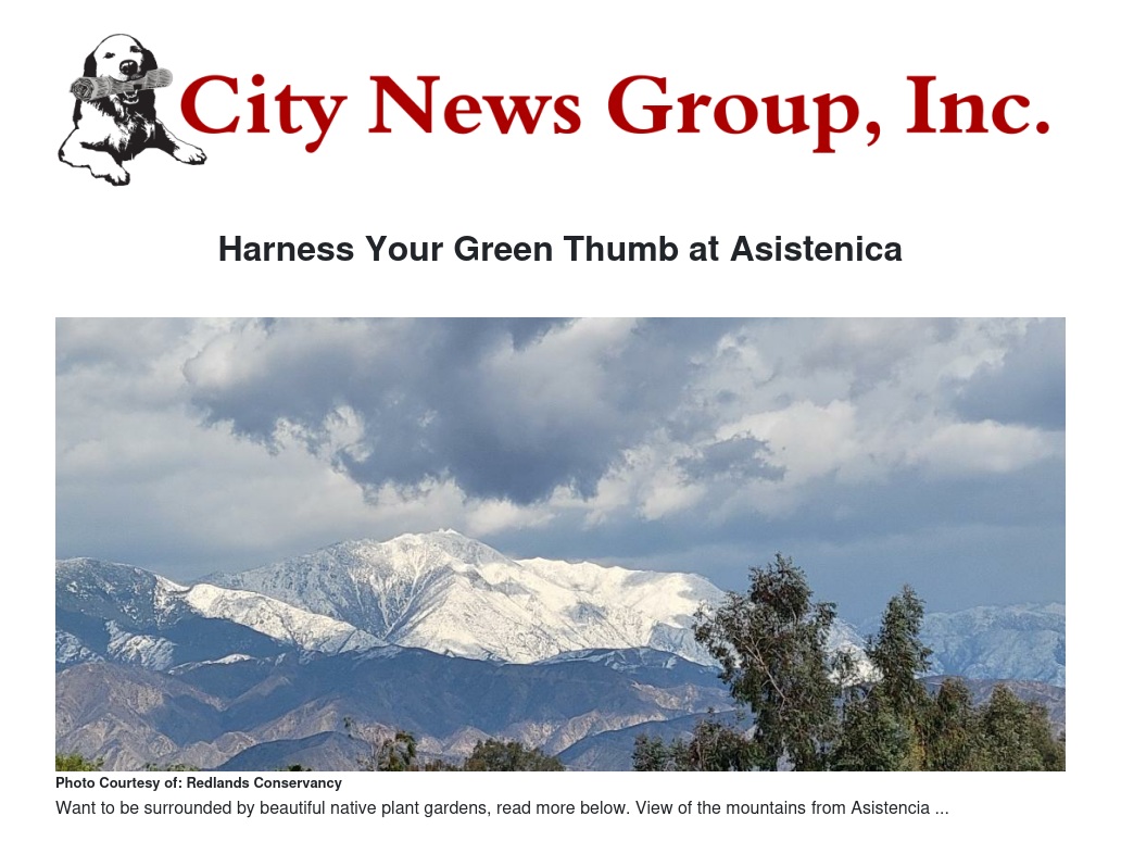 Want to participate in Redlands Conservancy's Community Garden Program? This Sunday will be the best time to go to Open Gates at Asistencia between 1 and 4pm. An Ho, the Community Garden Coordinator will be host with fellow host Lizanne Fleming. An will be able to show you the available garden plots and tell you all about the program. It's also a great Sunday to come out just to see the native plant gardens - An can take you on the tour of the gardens, also. Or, you might just want to come for the first Sunday in Spring, and wander in the courtyard under the elm trees just leafing out. You can also follow the QR codes for a tour, as detailed as you want. Bring a picnic, and take your time. And, we thank you for enjoying beautiful historic Asistencia, 26930 Barton Road in Redlands.
