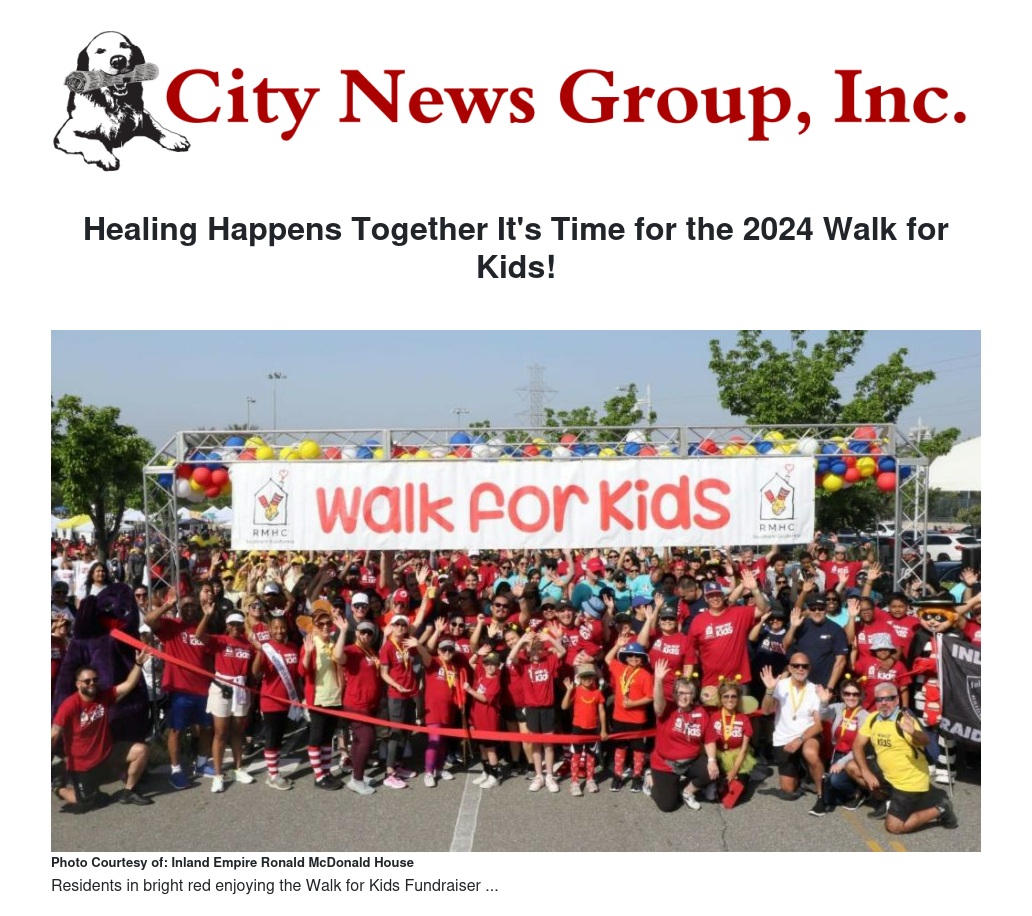 The Walk for Kids™ is an annual community fundraiser that supports the children and families who rely on the life-changing services and programs provided by the Inland Empire Ronald McDonald House.