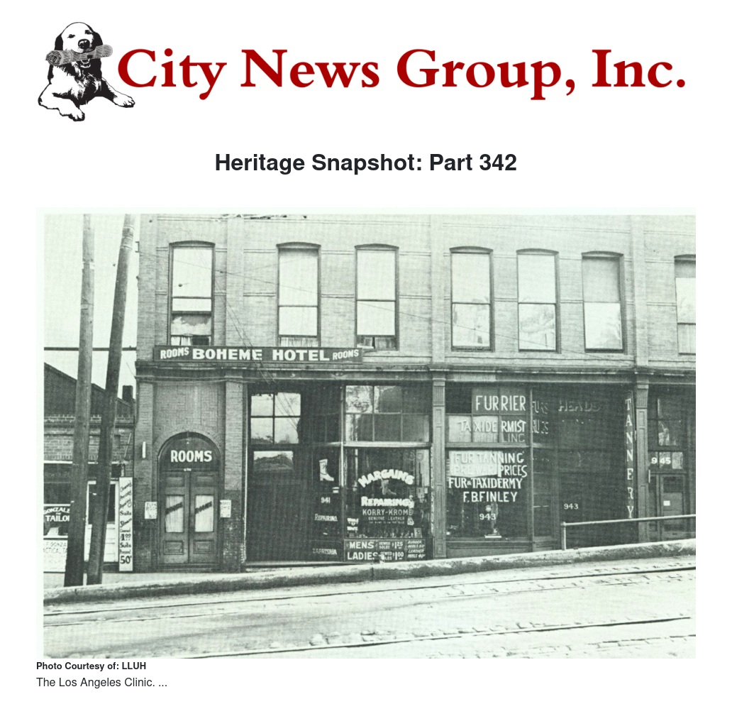 On September 29, 1913, CME launched its long-awaited Los Angeles outpatient clinic at 941 East First Street, one mile from the Los Angeles Civic Center. Within a year CME had increased its accommodations by erecting a small building behind the clinic for medical examinations and a classroom. But, from the start administration recognized the need for a hospital in connection with the clinic.