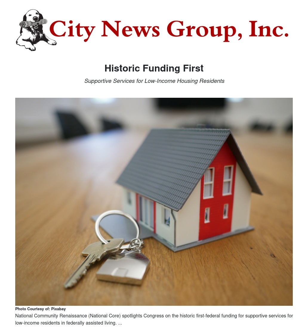 National Community Renaissance (National CORE) lauded Congress for a historic first – federal funding for supportive services for low-income residents in federally assisted housing. National CORE also called out Rep. Pete Aguilar (D-CA) for his leadership in introducing legislation to authorize funding for supportive services and for securing this $2.5 million to demonstrate the efficacy of this initiative.