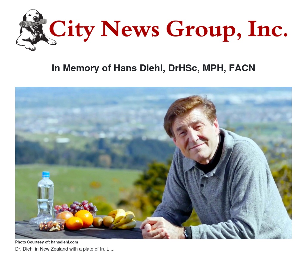 Hans Diehl, DrHSc, MPH, FACN passed away on August 2, 2023, at Loma Linda University Medical Center from an AFib-related stroke.