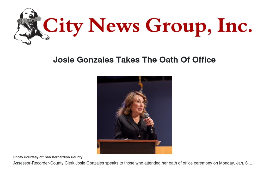 On Jan. 6, Josie Gonzales took the oath of office to become San Bernardino County’s new Assessor-Recorder-County Clerk, having been elected to the position in November.