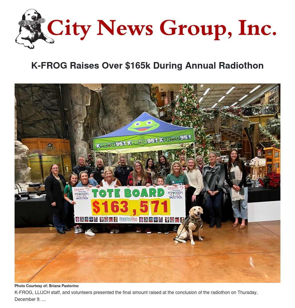 During the past 20 years, K-FROG has raised more than $6.8 million for the hospital during the annual holiday-themed event.