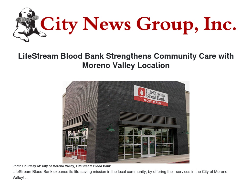 MORENO VALLEY, CA -- Moreno Valley residents have a new, convenient way to help save lives as LifeStream Blood Bank expands its life-saving mission in the community. With a population of more than 215,000, Moreno Valley is uniquely positioned to support a successful local donor center, making it easier than ever for residents to give blood close to home.