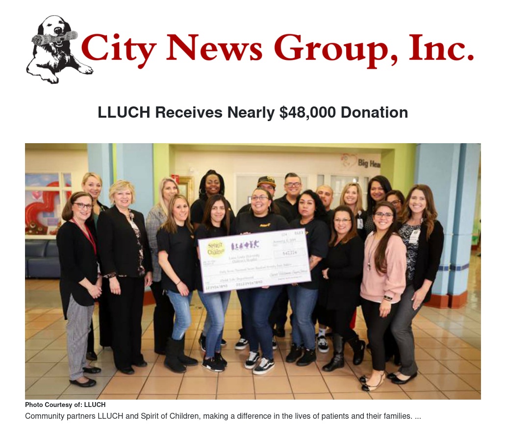 Loma Linda University Children’s Hospital received $47,774 from Spirit of Children on Thursday, January 24, supporting the Child Life program at the hospital. Scott Perryman, MBA, senior vice president and administrator of Children’s Hospital, thanked Spirit stores on behalf of the hospital. “There’s such power in community partners,” Perryman said. “Spirit stores spread our story to countless people, and we are thankful the organization has chosen to support us with a cumulative total of nearly $400,000 in donations from the last eight years.”