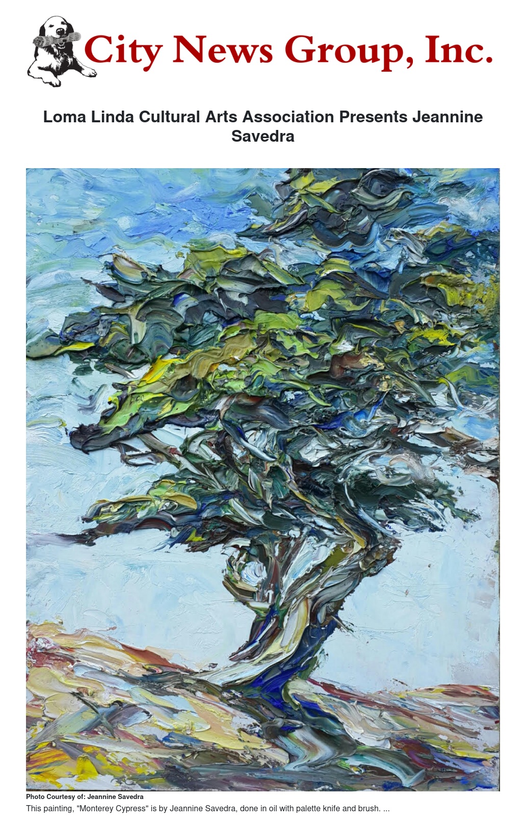 The Loma Linda Cultural Arts Association will present Pasadena-based artist Jeannine Savedra at the monthly meeting, Sunday, August 5, 2018, in the Loma Linda Senior Center, from 2 pm until 4 pm. Ms. Savedra, who works in oil, will inform attendees on her favorite techniques and materials, while she demonstrates her use of both. The intimate setting for this presentation provides ample opportunity to converse with the artist as she paints.
