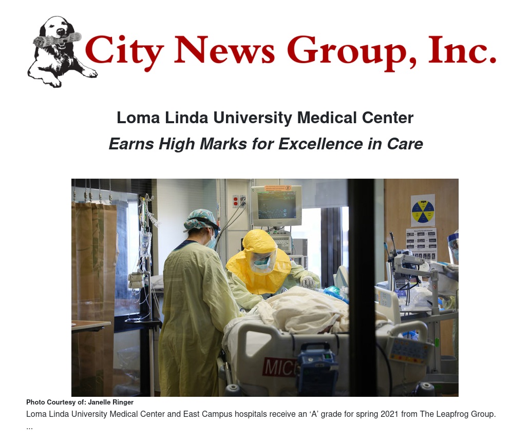 Loma Linda University Medical Center and East Campus hospitals have been recognized nationally for patient safety and quality achievements, receiving an ‘A’ grade for spring 2021 from The Leapfrog Group, a national independent watchdog organization.