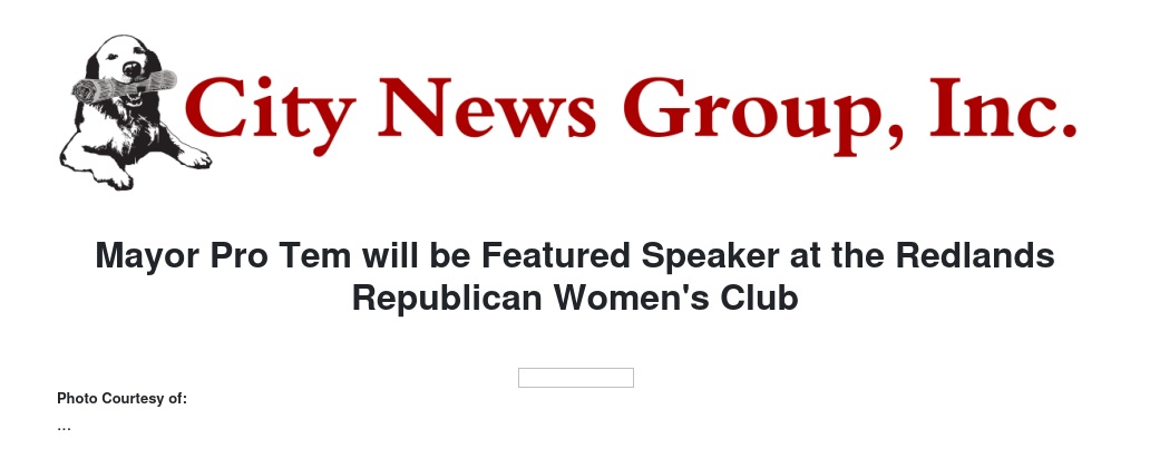 The Redlands Republican Women’s Club is pleased to announce that Paul Barich, Mayor Pro Tem for the City of Redlands, will be the featured speaker at the club’s September, Friday lunch meeting. The meeting will be held at the Redlands Country Club starting at 11:30 am, with a delicious lunch served at noon and the presentation scheduled at 12:30 pm. The cost for lunch is $20 and reservations must be made by Sept. 19. For reservations call Laurie Tremain at (909) 792-2501. If you want to hear the speaker and not have lunch, there is no cost, and there will be seats available. College students are invited to attend and lunch will be free for them.
