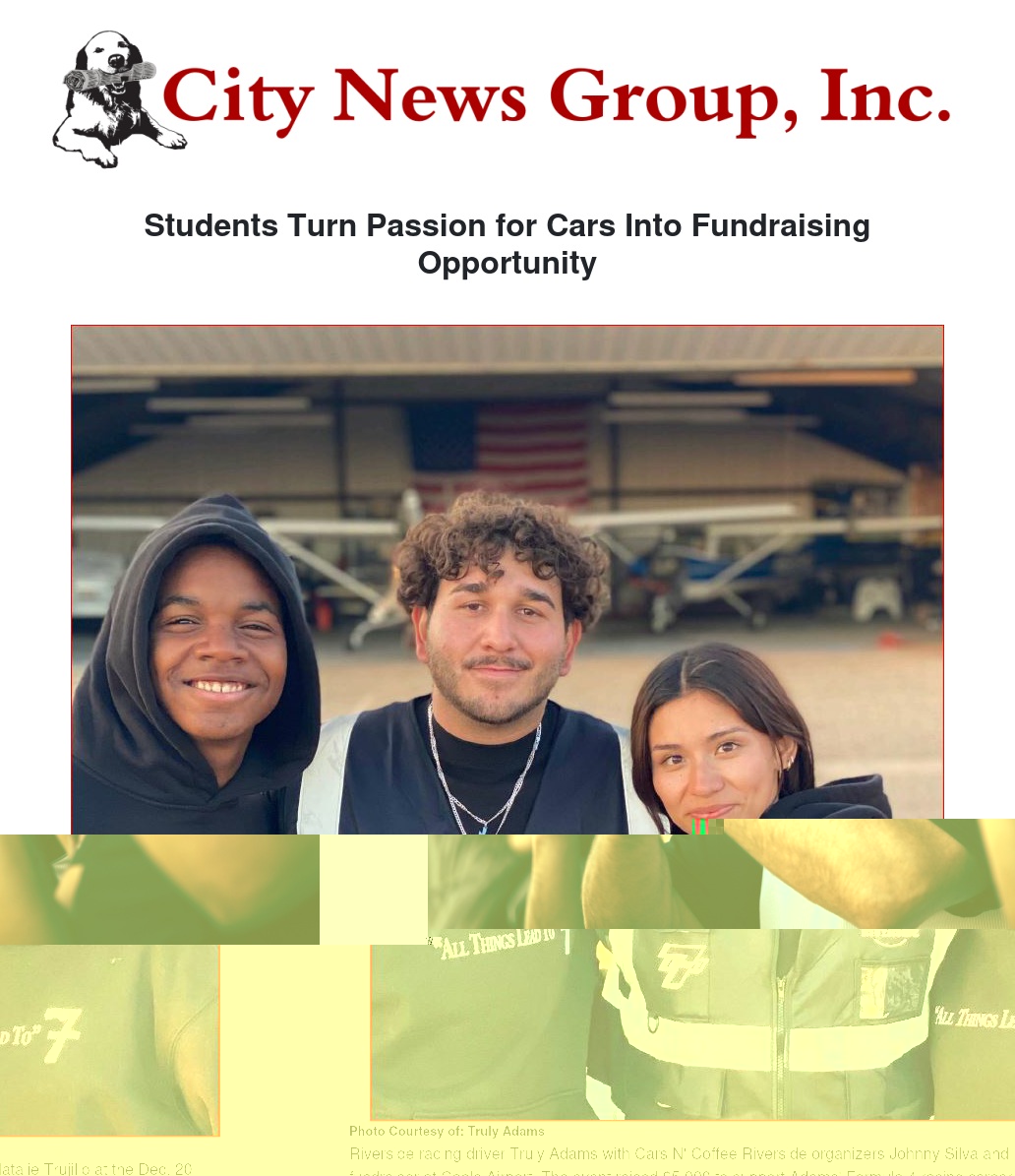 Riverside racing driver Truly Adams with Cars N' Coffee Riverside organizers Johnny Silva and Natalie Trujillo at the Dec. 20 fundraiser at Cable Airport. The event raised $5,000 to support Adams' Formula 4 racing career.