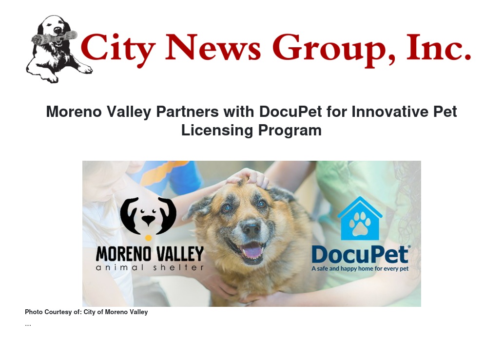 “DocuPet’s online licensing solution will be extremely valuable to Moreno Valley pet owners and necessary for animal safety in our community,” said Ulises Cabrera, Mayor of Moreno Valley. “This pet licensing partnership will help reduce the number of animals in our shelter and open up space and vital resources for pets most in need of care. We are excited about this partnership and encourage our residents to utilize this program to help protect their four-legged friends.”