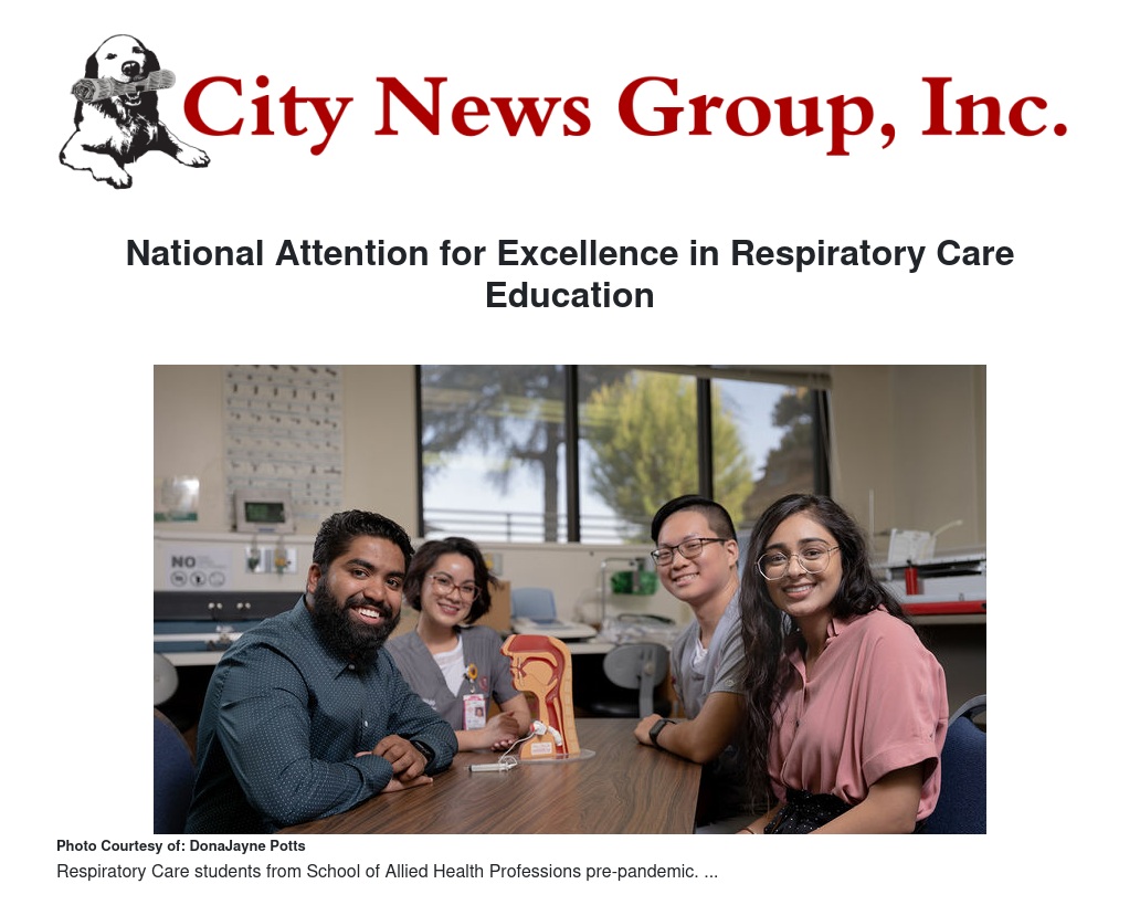 “Since achieving maximum reaccreditation of 10 years by the Commission on Accreditation for Respiratory Care in 2019, we have sought to meet all 16 standards required for the AARC APEX award designation,” said Richard Nelson, MD, RRT, program director. “Through support of our faculty and the outstanding national board performance of our alumni, we have been honored as the first on the West Coast to achieve this elite distinction issued to only seven other programs in the nation.”