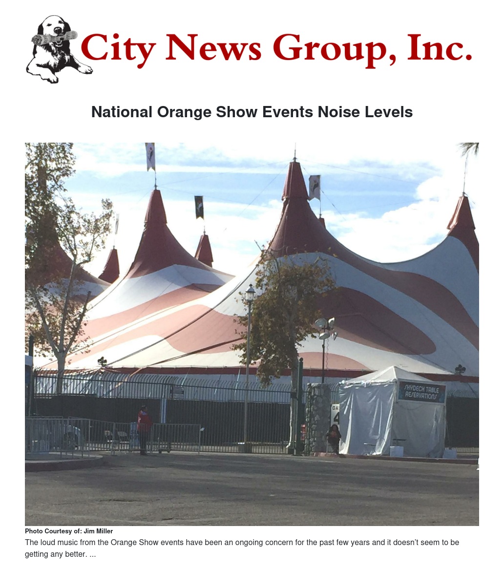 As has been written before, the cities surrounding the National Orange Show (NOS) in San Bernardino have been inundated with extreme music noise levels at the different events held at the event site. Mayor Darcy McNaboe of Grand Terrace reported to the rest of the council members and residents in her remarks on January 9, 2018 at the council meeting that there had been one meeting concerning this issue to date. She said, “I have spoken to Mayor Carey Davis of the City of San Bernardino and one of the events at the NOS was marijuana elated. Mayor Davis was trying to impress upon the NOS that these types of events don’t fit with the City and the surrounding cities i.e. Grand Terrace, Colton, Loma Linda and Highland and the reputation they are trying to build.” Currently the Grand Terrace City Attorney believes most of the Orange Show events affect the City of San Bernardino and the other surrounding cities and is beginning to take a toll on each. The loud music has been an ongoing concern for the past few years and it doesn’t seem to be getting any better.