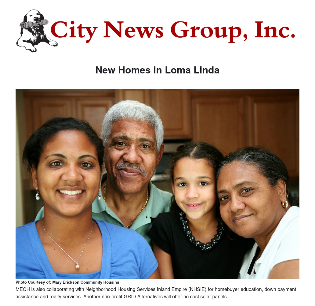 MECH is also collaborating with Neighborhood Housing Services Inland Empire (NHSIE) for homebuyer education, down payment assistance and realty services. Another non-profit GRID Alternatives will offer no cost solar panels.