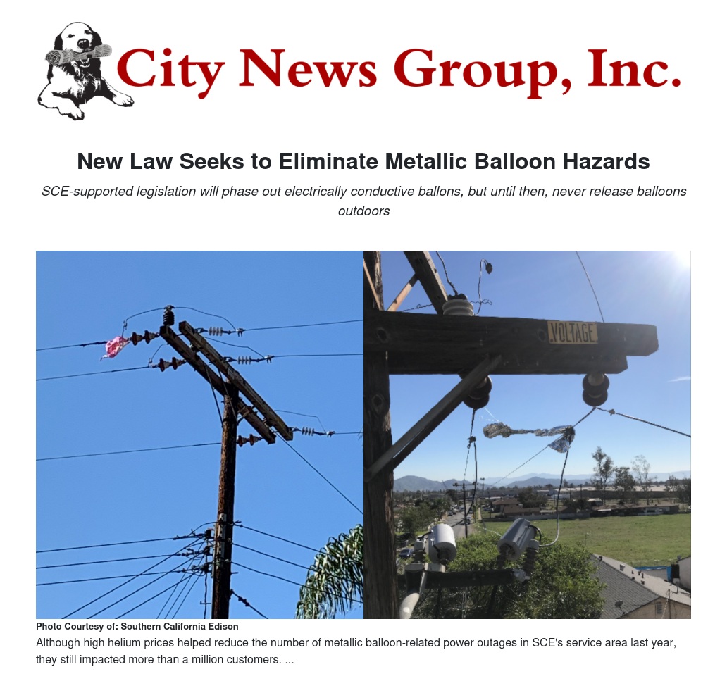 Still, released metallic balloons continue to bedevil Southern California Edison and other California utilities, causing public safety hazards and hundreds of power outages yearly when they float into power lines and electrical equipment.