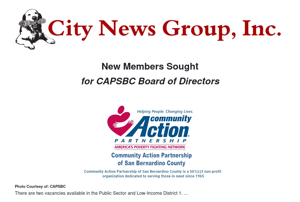 Community Action Partnership of San Bernardino County (CAPSBC) is urgently seeking new members to serve on its Community Action Board (CAB). Currently, there are two vacancies in the following sectors: Public Sector and Low-Income District 1. All applicants requesting consideration to represent these sectors on the board must reside in San Bernardino County. Board members provide critical input, expertise and perspective to CAPSBC in the organization's work of supporting, advocating for and empowering residents to achieve self-reliance and economic stability.