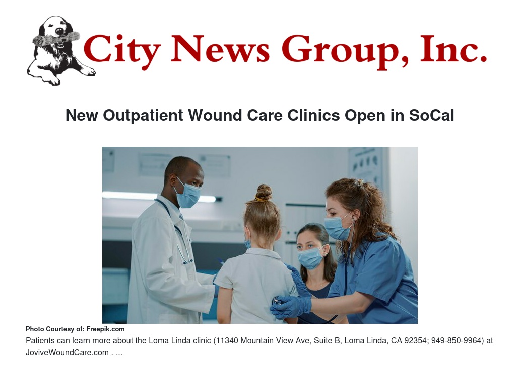 Patients can learn more about the Loma Linda clinic (11340 Mountain View Ave, Suite B, Loma Linda, CA 92354; 949-850-9964) at JoviveWoundCare.com . Clinics are open Monday-Friday from 8 a.m. to 5 p.m.