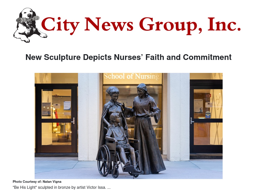 The “Be His Light” sculpture, set in the 1950s, depicts the eloquent blend of a nurse’s faith and clinical practice to provide compassion, hope and the promise of wholeness.