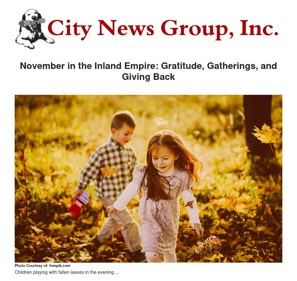 November in the Inland Empire: Gratitude, Gatherings, and Giving Back by William Cortez - City News Group, Inc.