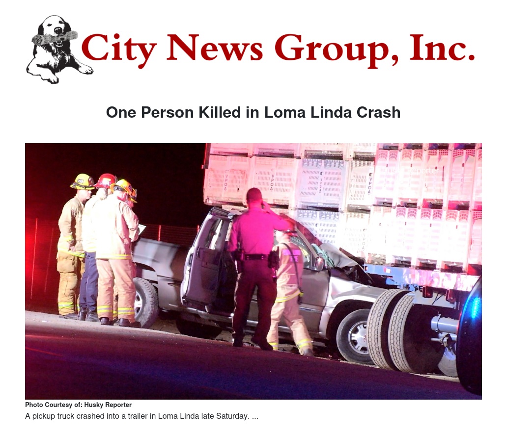 On February 22nd, 2025, at about 9:46 PM, the San Bernardino County Sheriff’s Department, Loma Linda Fire, and AMR responded to a traffic collision on California Street, just South of West Park Avenue in Loma Linda.