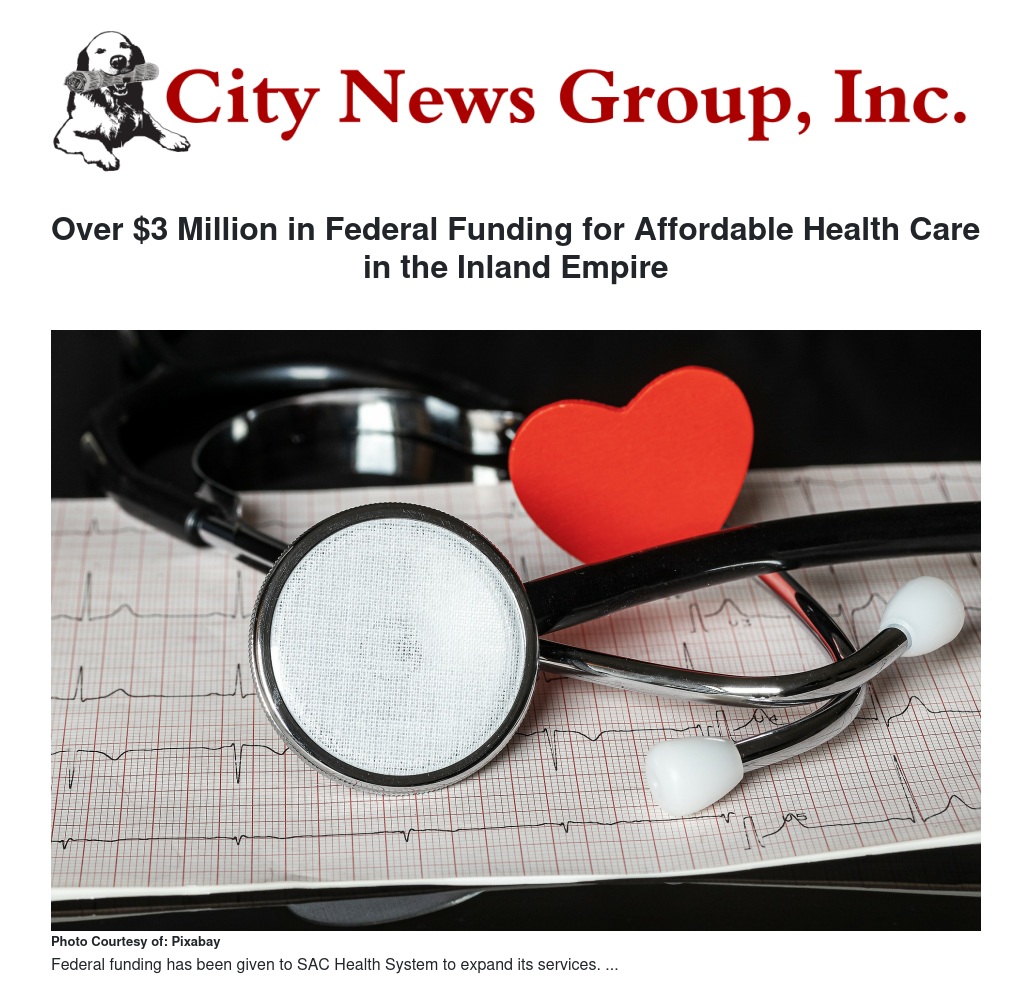 On April 20, Rep. Pete Aguilar announced $3,046,195 in federal funding for SAC Health System to expand its services and provide quality, affordable health care to a greater number of San Bernardino County residents. This funding from the Department of Health and Human Services (HHS) and Health Resources and Services Administration (HRSA) will provide the resources necessary to improve and support patient care and increase access to preventative care.