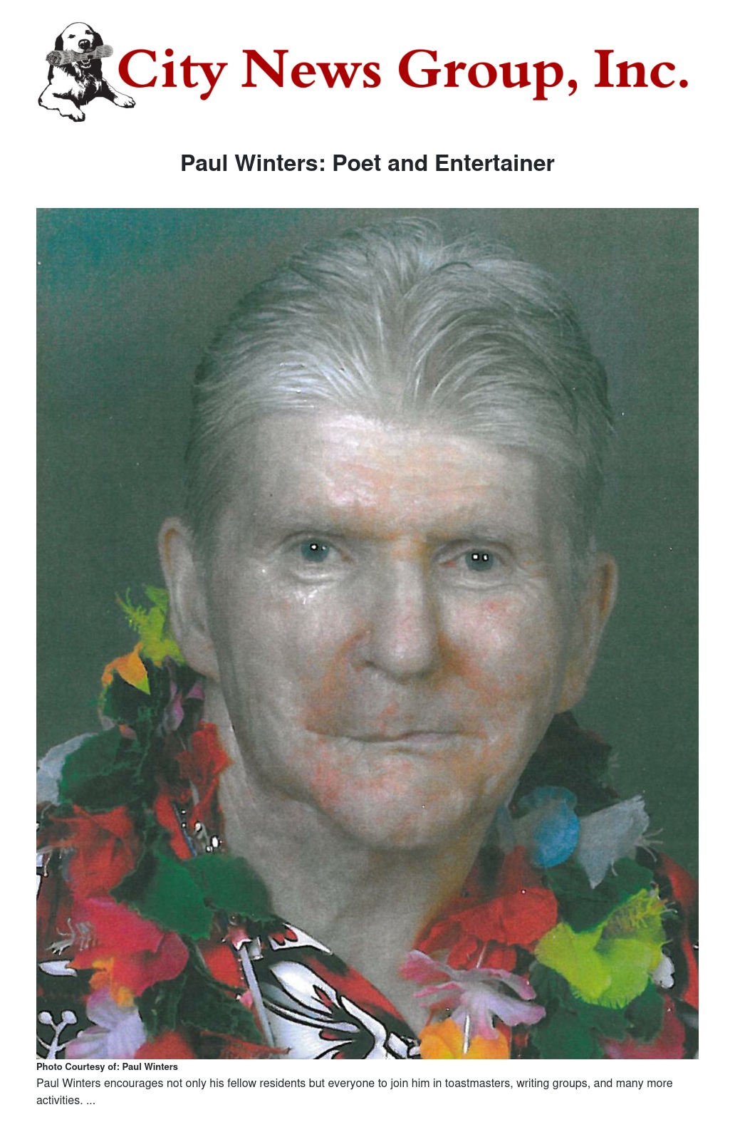 Paul Winters is a 72 year old poet and entertainer. He has sung and played the piano and the organ in various nursing homes and in churches. He takes pride in his music and just as much in his poetry. He has written and had six published books of poems. Each of his books include over close to two dozen poems. His collections of personally written poems include Salvation, My Ambition, and Heaven.