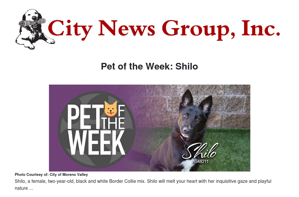 Pet of the Week: Shilo by Stella Pierce - City News Group, Inc.