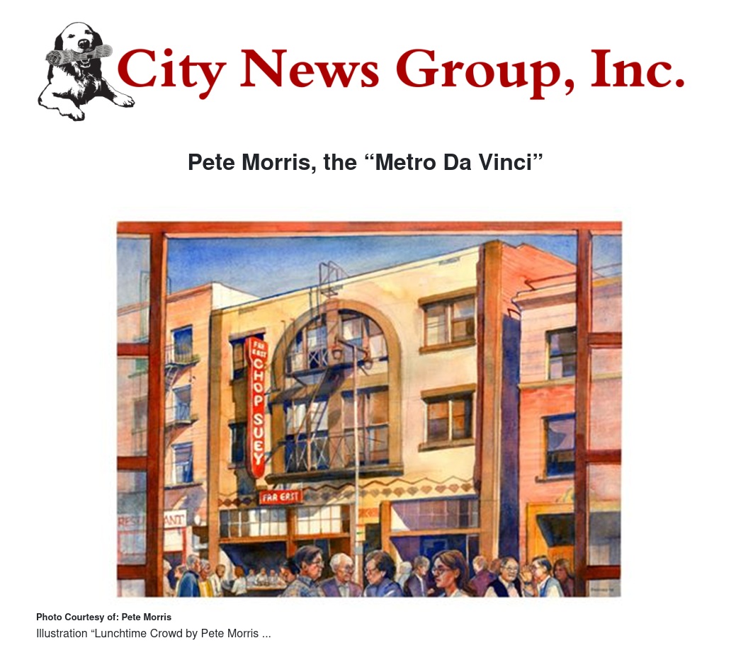 But Morris is not limited to one setting in a quest for memorable material. As shown in the painting attached to this note, he is a meticulous observer of his surroundings, no matter where he is. Scan his online sites to discover more of the often-unnoticed beauty in city life.