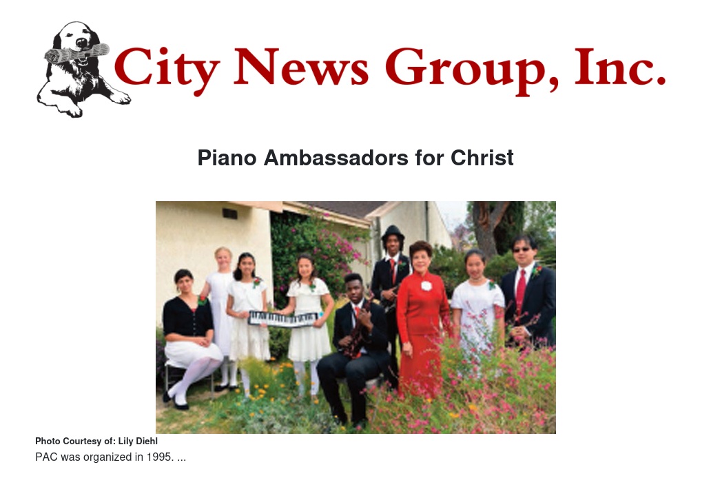 Piano Ambassadors for Christ multi-media, sacred concert of Music and the Word will be held on Saturday, May 12, 2018 at 11 am hour of worship at the Loma Linda Filipino SDA Church located at 11180 New Jersey Street in Loma Linda. This Inland Empire organization features young pianists (ages 6-18) led and directed by their teacher and concert artist Dr. Lily Pan Diehl.
