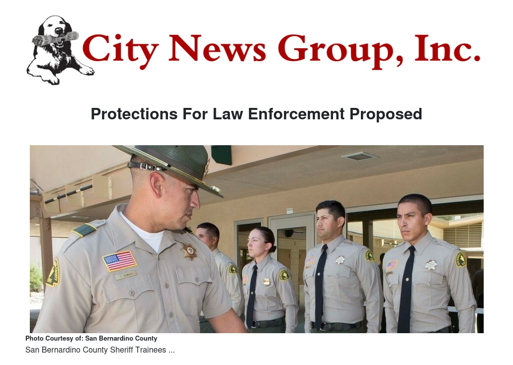 Protections For Law Enforcement Proposed by Ruby Stehenson - City News Group, Inc.