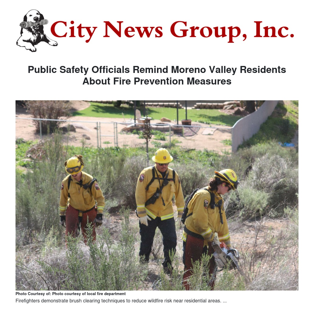 Public Safety Officials Remind Moreno Valley Residents About Fire Prevention Measures by Ruby Stephenson - City News Group, Inc.