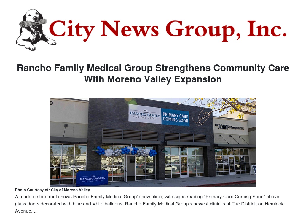 Rancho Family Medical Group Strengthens Community Care With Moreno Valley Expansion by Ruby Stephenson - City News Group, Inc.