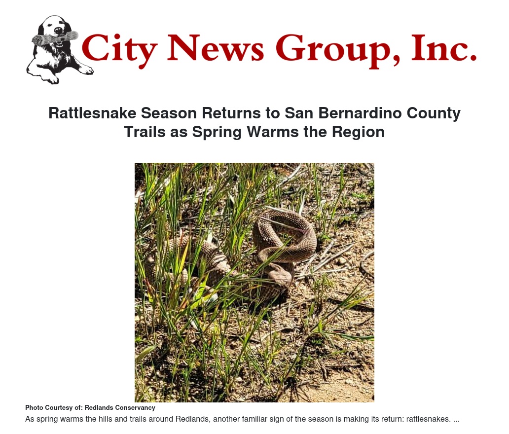 Rattlesnake Season Returns to San Bernardino County Trails as Spring Warms the Region by Eric Montgomery - City News Group, Inc.