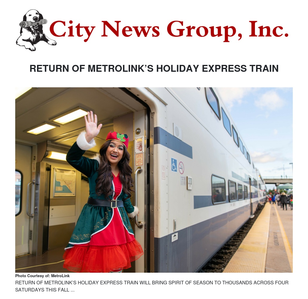 Metrolink’s Holiday Express Train will return this fall, spreading holiday cheer across Southern California with an interactive, family-friendly experience unlike any other. Holiday Express Trains are specially ticketed round-trip rides featuring festive decorations, recognizable holiday-themed characters, carolers and onboard and host-station activities for all ages.