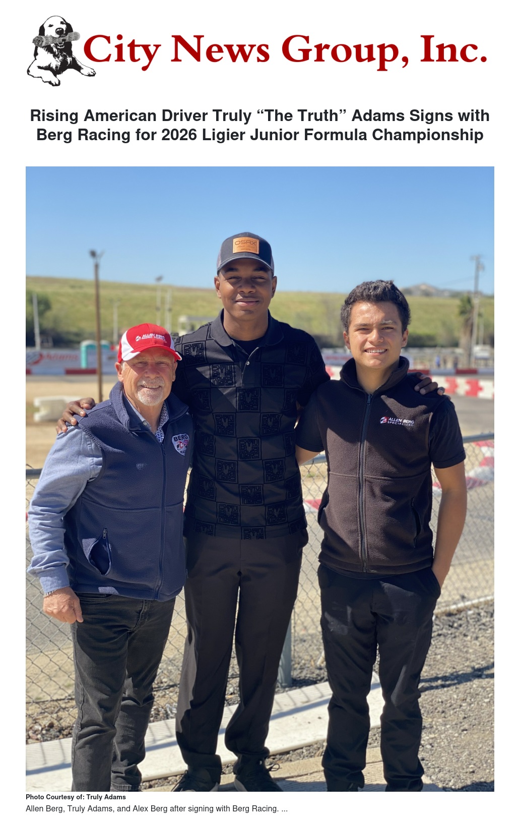 Rising American Driver Truly “The Truth” Adams Signs with Berg Racing for 2026 Ligier Junior Formula Championship by Justus Baker-Postell - City News Group, Inc.