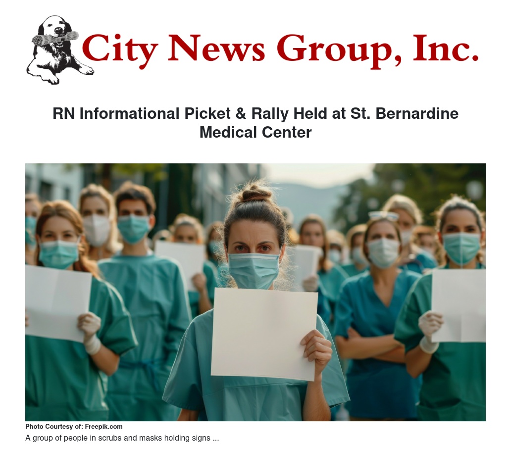California Nurses Association represents nearly 800 RNs at St. Bernardine Medical Center. The nurses at St. Bernardine notified their employer of the informational picket on October 16.