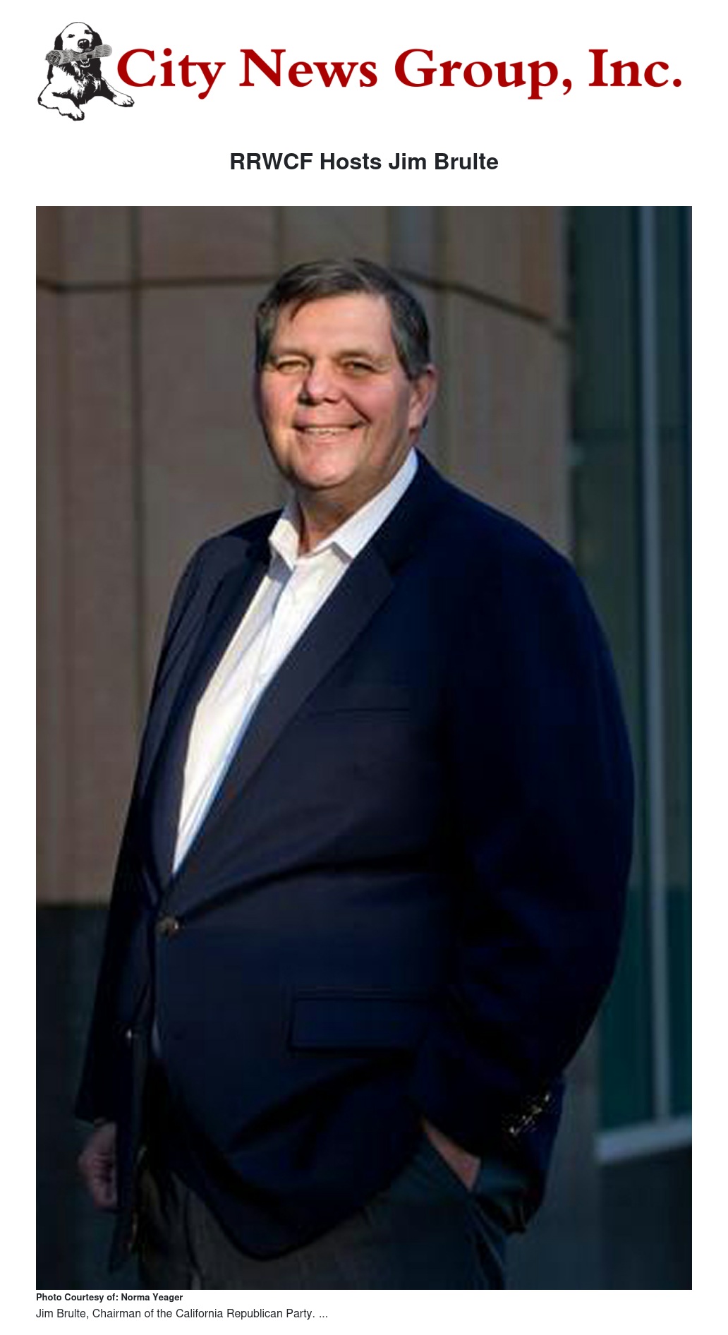 On Friday November 16th, 2018 the Redlands Republican Women's Club Federated is pleased to announce that Jim Brulte, Chairman of the California Republican Party, will be the featured speaker at the club's lunch meeting.