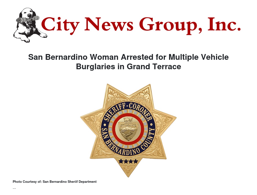 San Bernardino Woman Arrested for Multiple Vehicle Burglaries in Grand Terrace