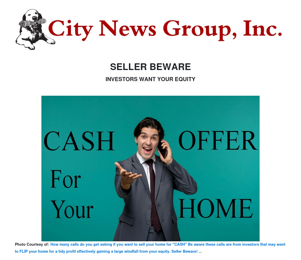 "BEWARE!" we have all heard of "caveat emptor" which is Latin for "Buyer Beware", but now it’s time for sellers to beware. Real estate owners need to become aware how many Investors work to control your property until they can sell it and take your hard earned equity. First, they call and asking if you want to sell your property "CASH" and that they are an investor looking for property in your area. Make no mistake these investors are not your friend. They’re trying to buy your property cheap...