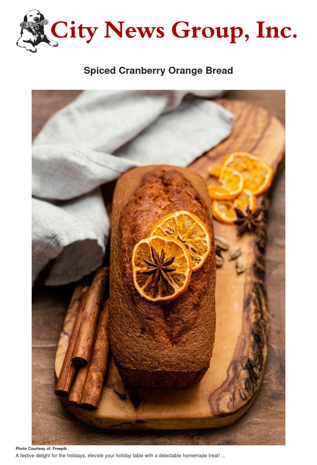 - Once cooled, slice and serve this aromatic Spiced Cranberry Orange Bread with a dusting of powdered sugar for an extra festive touch.
