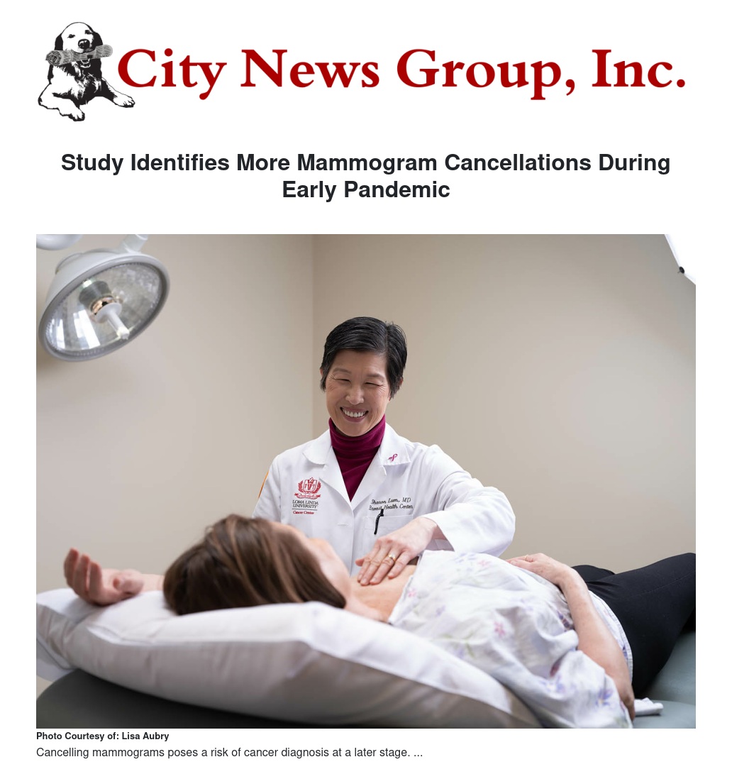“From the oncology side, we’ve had this fear that people who don't come in for their screening tests may eventually present at a much later stage of a cancer diagnosis," says Sharon Lum, MD, chair of LLUH Department of Surgery and the study’s principal investigator. “That’s why we wanted to look at trends and possible explanations for mammogram cancelations during early pandemic months."