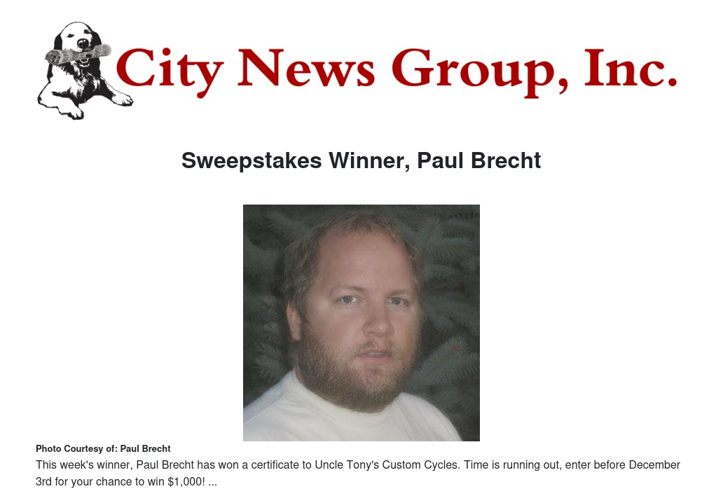 Sweepstakes Winner, Paul Brecht by City News Group - City News Group, Inc.