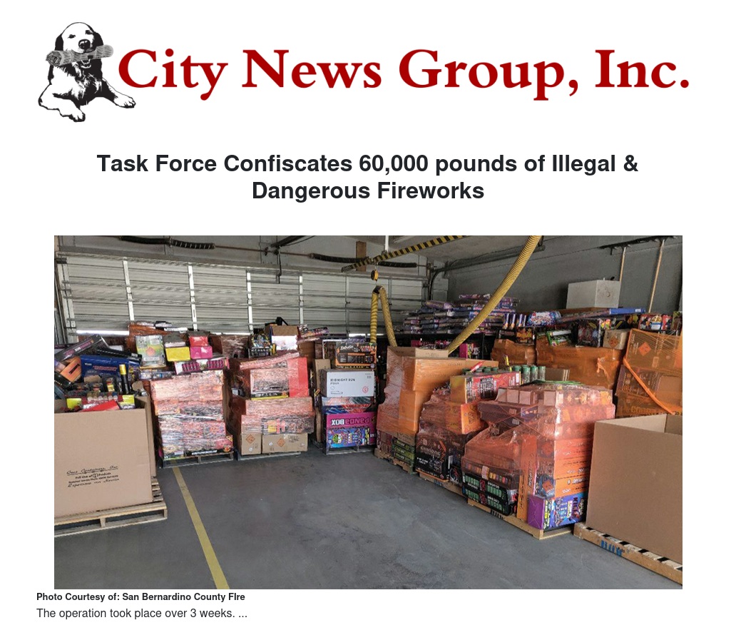 Task Force Confiscates 60,000 pounds of Illegal & Dangerous Fireworks by Tracey Martinez - City News Group, Inc.