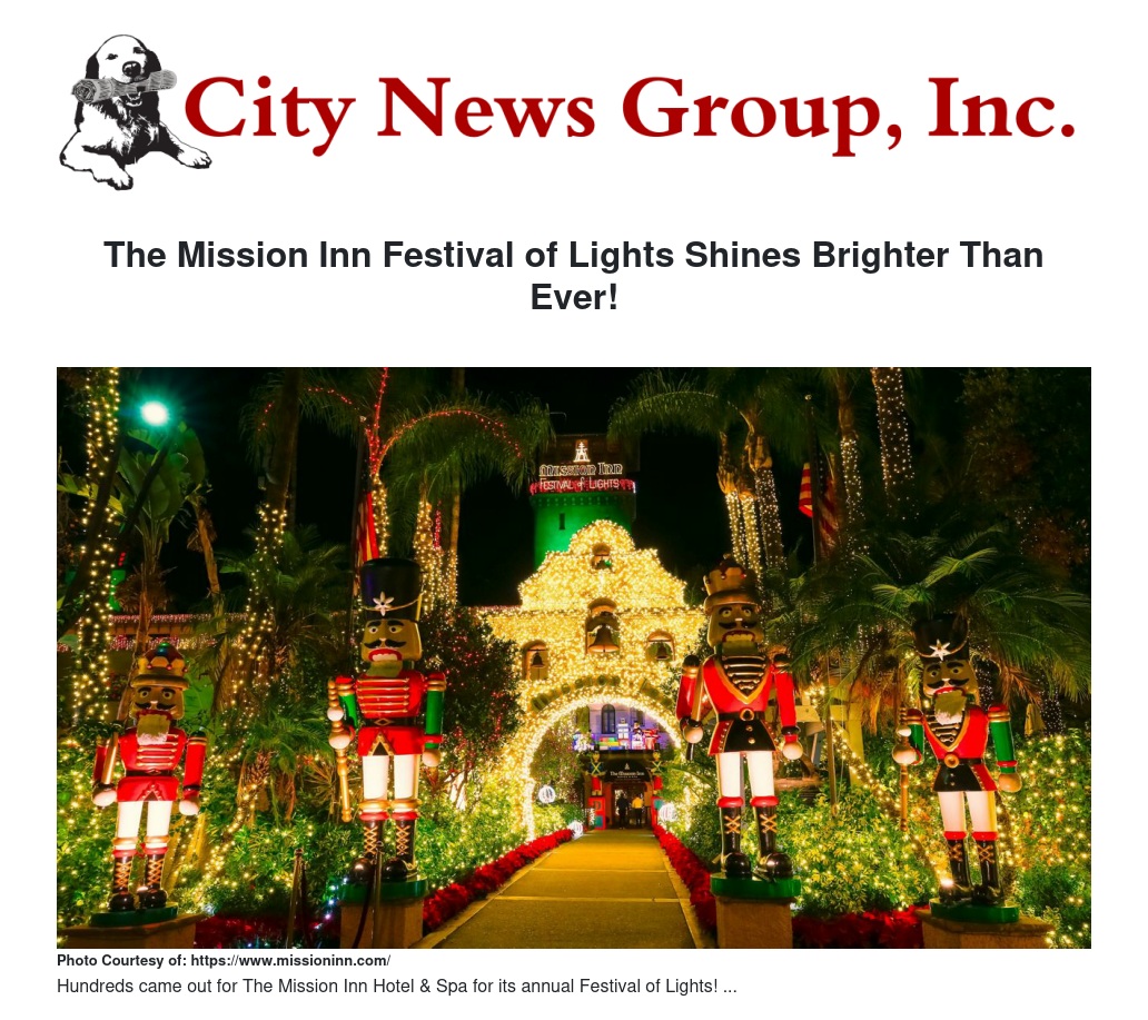 The holiday season has officially kicked off in the Inland Empire, heralded by the spectacular illumination of The Mission Inn Hotel & Spa for its annual Festival of Lights! This beloved, long-standing tradition has once again captivated the hearts of residents and visitors alike, solidifying its place as a must-see event of the Christmas season.