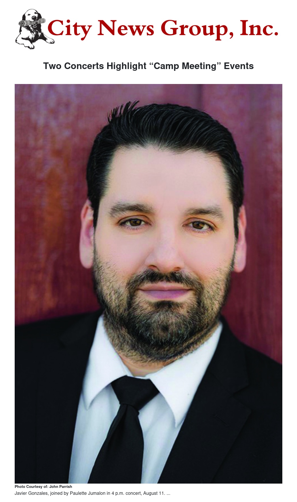 Inland Empire residents with an interest in sacred music performance are invited to two free concerts at the Calimesa Seventh-day Adventist Church as highlights of the congregation’s annual August “camp meeting” celebration. The concerts feature vocalists Javier Gonzalez and Paulette Sheen Jumalon in a 4 p.m. concert this Saturday, Aug. 11, and Christian Edition, a popular regional men’s chorus, at 4 p.m. Saturday, Aug. 18.
