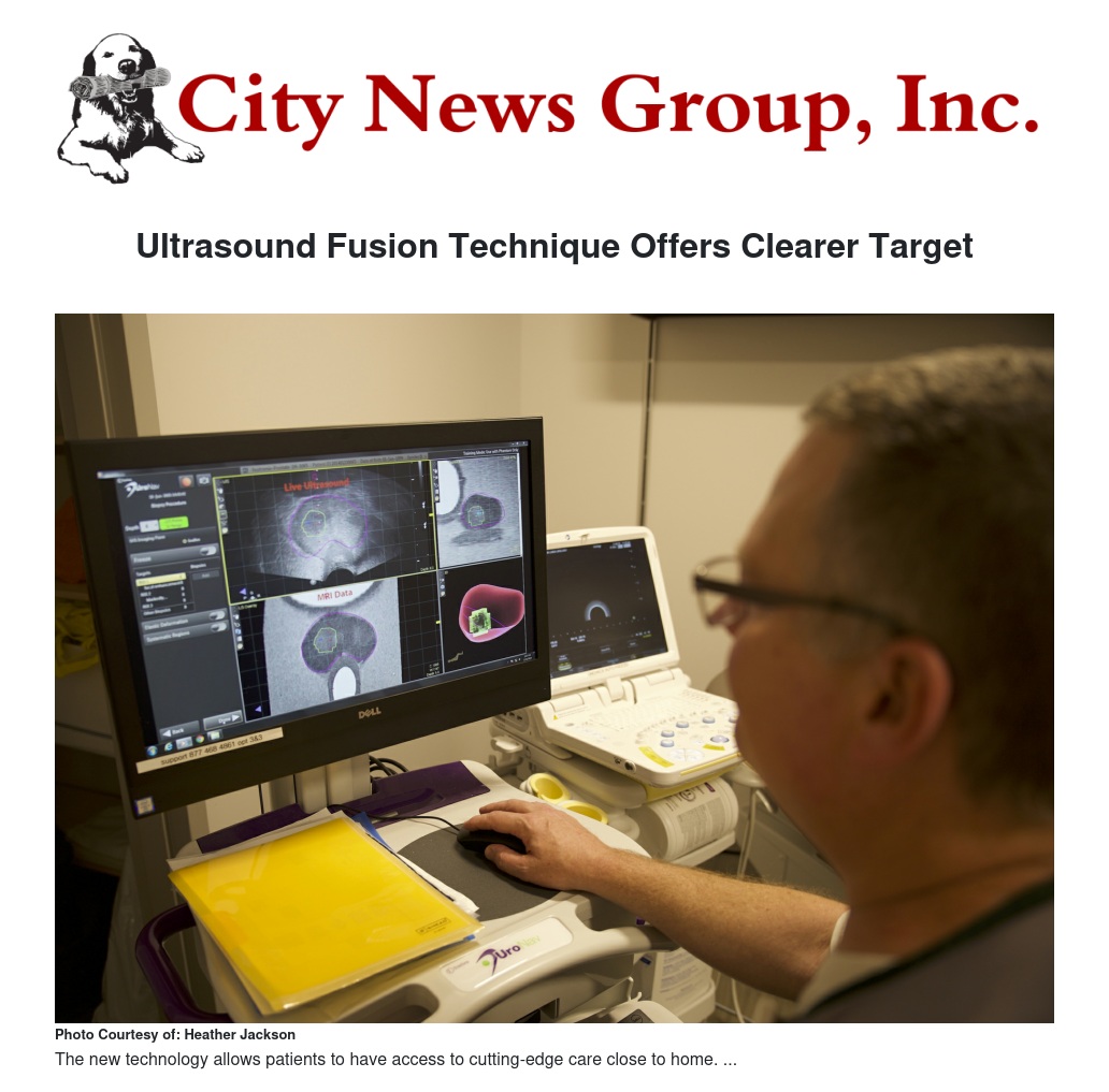 MRI is currently the most accurate method of imaging the prostate. An MRI/ultrasound fusion biopsy now uses images from images of the prostate from the previously obtained MRI and the real-time ultrasound images to guide the prostate biopsy at areas suspicious for cancer. First, a radiologist reads an MRI of the prostate and marks the boundaries of the prostate and any suspicious lesions on the MRI pictures. Those images are then sent to a computer in the Urology Department. A urologist then starts the biopsy procedure using an ultrasound, then overlays the marked MRI image on the ultrasound image to pinpoint precisely where the lesions are. A biopsy needle is then directed to the suspicious area with greater precision than previously possible.
