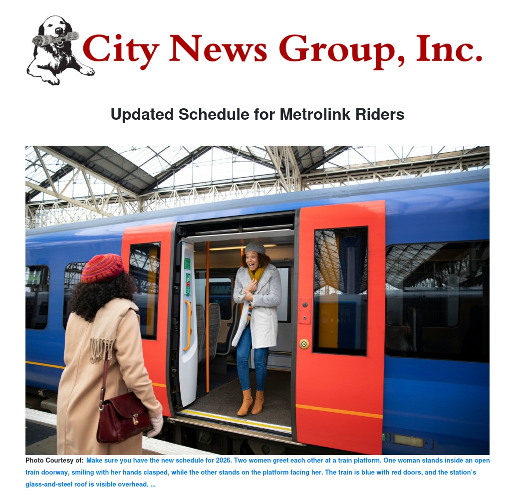 Updated Schedule for Metrolink Riders by William Cortez - City News Group, Inc.